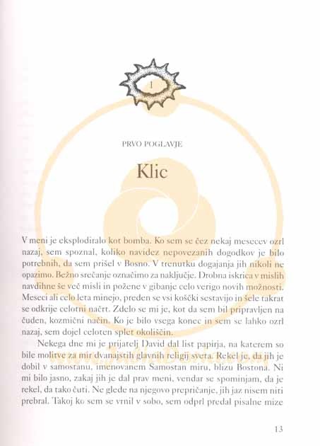 To ni samo pripoved o nizu dogodkov in o mnogih skrivnostnih naključjih, ki jih je nekdo doživel - knjiga govori predvsem o prebujanju zavesti brez primere, ki se trenutno odvija na Zemlji oz. še bolj natančno, v nas samih.