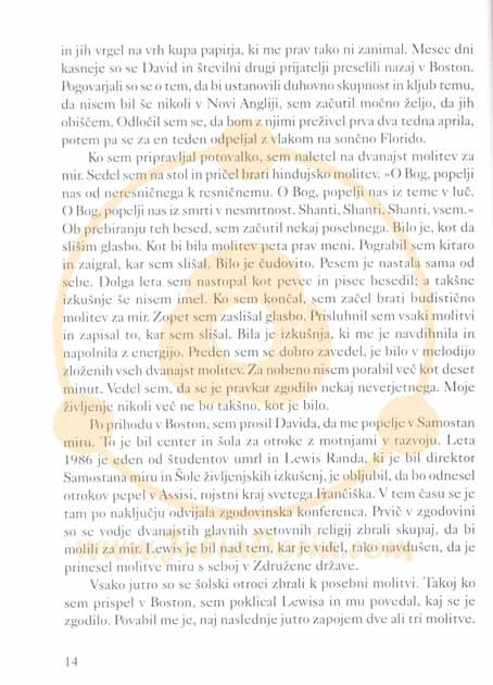 da izbirate med preostalo ponudbo v naši spletni knjigarni. ![]() Opomba:Naslov izvirnika: A Vision of Peace > Poslanci luči > Prevod: Breda Vukelj![]() Opis vsebine:Optimizem, ki veje iz knjige, nam je v pomoč pri naših prvih korakih spreminjanja strahu v ljubezen.