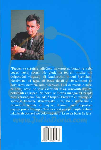 Opis vsebine:»Preden sprejmete odločitev za vstop na borzo, morate vedeti nekaj stvari. Ne glede na to, ali ste dolgoročni vlagatelj ali kratkoročni borzni špekulant. Neodvisno od tega, ali boste delali z obveznicami ali delnicami, oziroma celo z izvedenimi papirji kot so opcije.