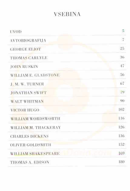 Ključne besede:avtobiografije, George Eliot, Thomas Carlyle, John Ruskin, William E. Gladstone, J. M. W. Turner, Jonathan Swift, Walt Whitman, Victor Hugo, Charles Dickens, William Shakespeare, Thomas A. EdisonPrijavite se in vpišite svoj komentar.