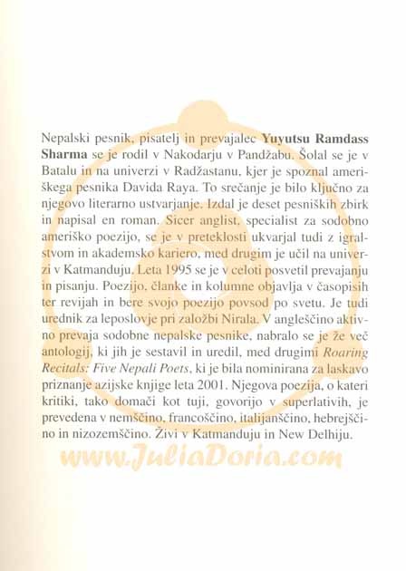 "Yuyutsu RD Sharma živi blizu Everesta. Njegova poezija pleza v višave, plava v deročih rekah in slika jesensko listje z bakreno barvo …" - Ronny Someck, Iton 77