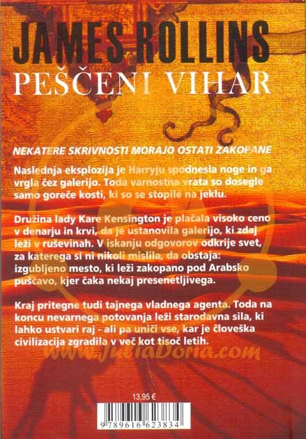 Ključne besede:James Rollins, peščeni vihar, leposlovje, romani, kriminalke, puščava, eksplozija, nevarnost, skrivnost, ruševine, izgubljeno mesto, stare civilizacijePrijavite se in vpišite svoj komentar.