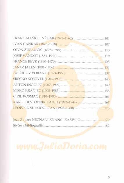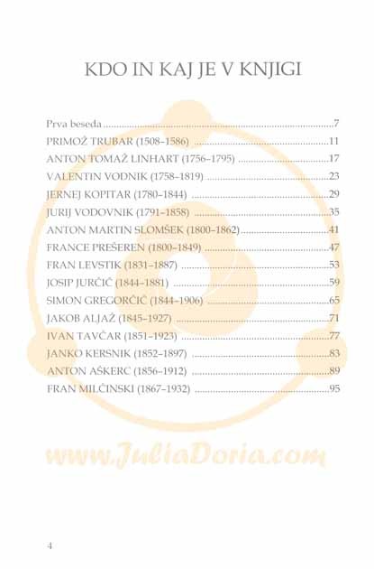 O njih so spregovorili literarni strokovnjaki in poznavalci, pa tudi pisateljev oz. pesnikov brat, sestra, žena, sin, vnuk, nečak in pranečak. V knjigi so tudi aktualni naslovi in telefoni spominskih sob in hiš omenjenih avtorjev. Torej priporočljivo za vse šole, počitniške skupine in izletnike. Z besedo in sliko so predstavljeni: