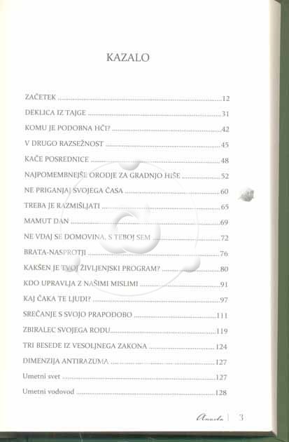 Opis vsebine:V knjigi iz zbirke Zveneče cedre Rusije z naslovom Anasta nas avtor Vladimir Megre pritegne s srečanjem in pogovori z Anastasijo in obema otrokoma. Kako se soočiti s težavami v današnjem svetu in si upati poiskati rešitve, je predstavljeno na tako razumljiv način, da v ljudeh vzplamti upanje in željo po spremembi. Knjiga nam ogreje srce in vzbudi radostna čustva do življenja.